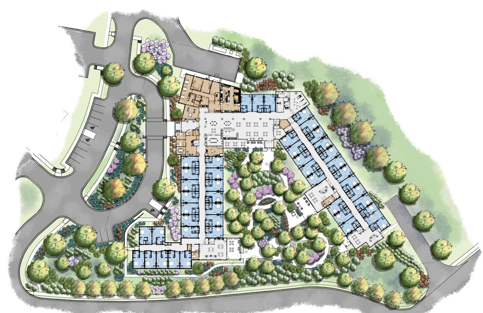 The Grande at Sterling Estates is an assisted living and memory care facility that will feature many amenities including a green house, art room, library, activity kitchen, game room, fitness center, hair and nail salon, serenity room, and wandering garden.